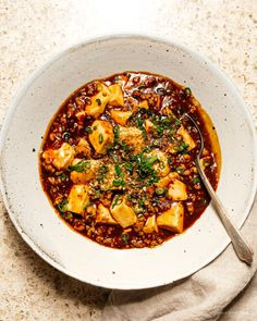 마파두부는 두부와 소고기를 주재료로 하여 매운 사천식 소스에 볶아 만든 요리다. 산초와 고추기름이 가미되어 매운맛과 마비감을 즐길 수 있는 대표적인 사천 요리로, 두부의 부드러움과 고기의 풍미가 어우러져 인기 있는 메뉴이다.